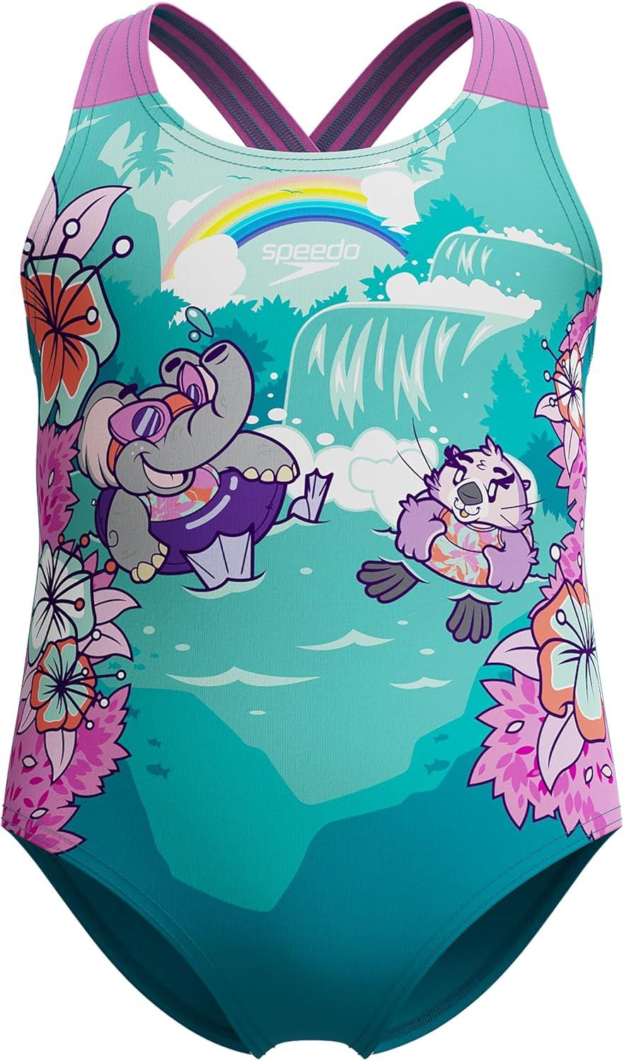 Speedo Baby-Girls Swimsuit Infant to Big Kid UPF 50+ Learn to Swim(Digital 1pc Arctic Glass)
