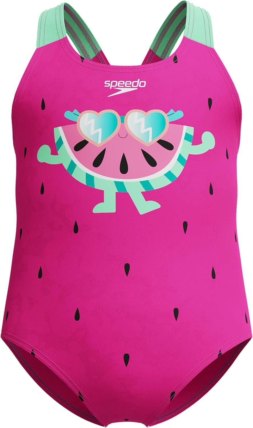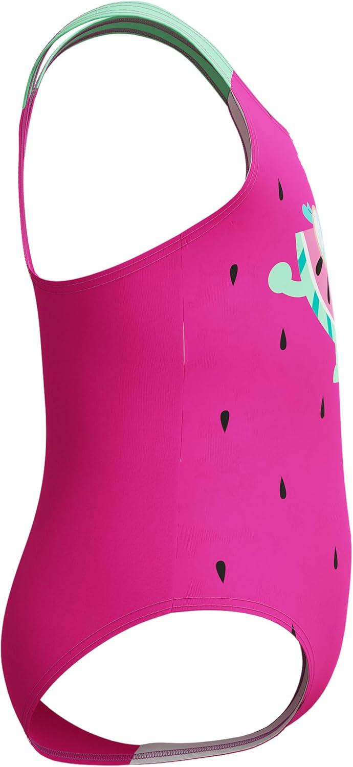 Speedo Baby-Girls Swimsuit Infant to Big Kid UPF 50+ Learn to Swim(Digital 1pc Neon Bubble Gum)
