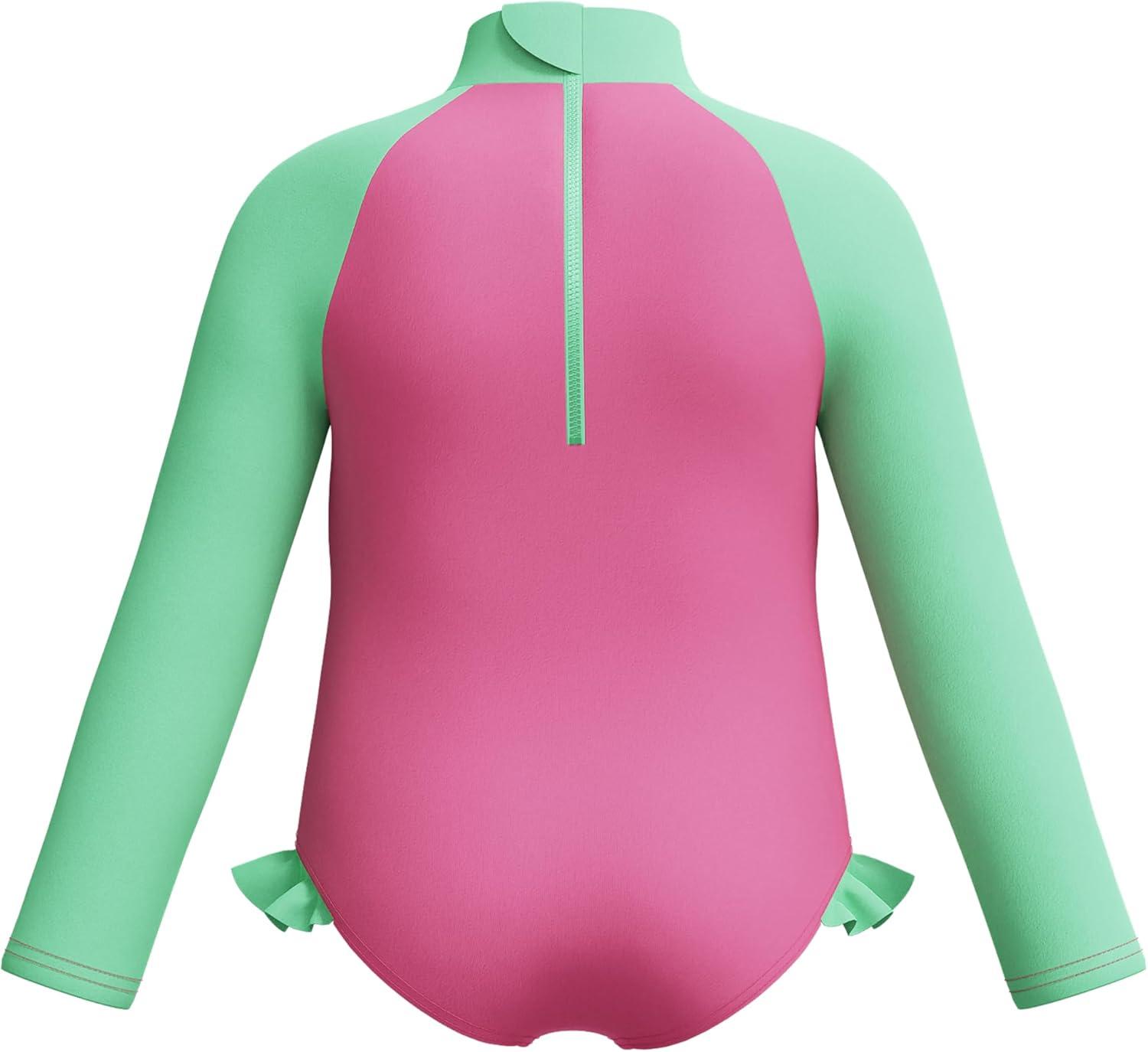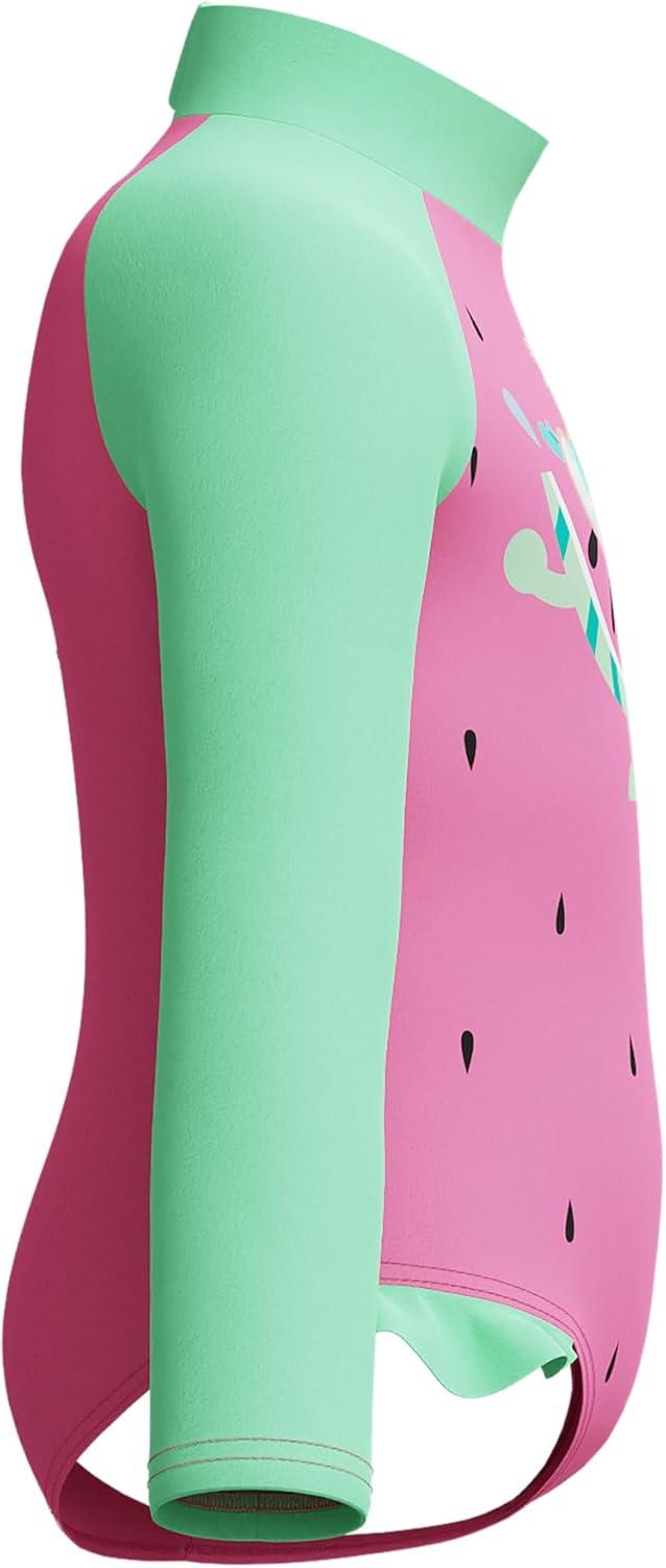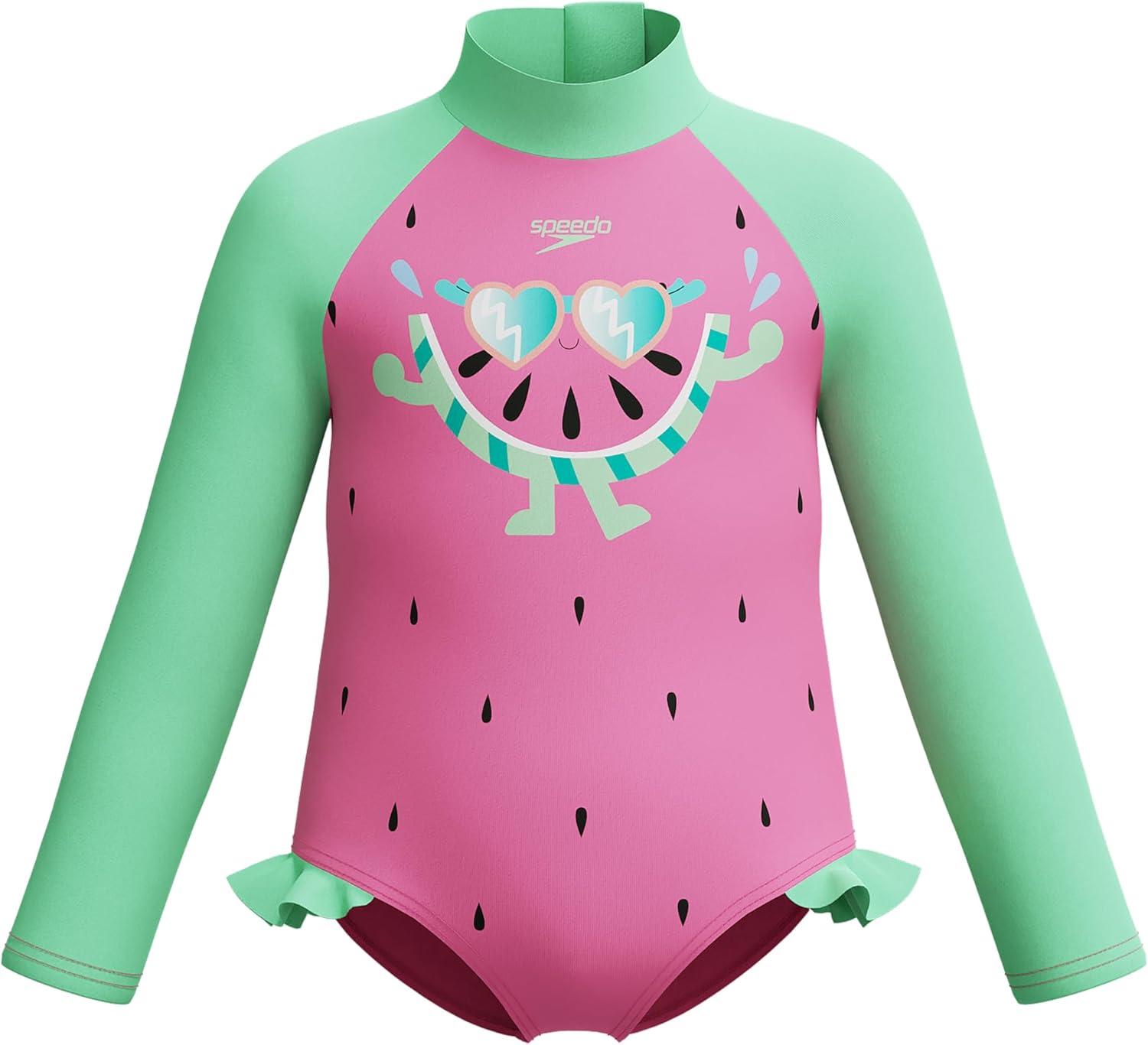 Speedo Baby-Girls Swimsuit Infant to Big Kid UPF 50+ Learn to Swim(L/S 1pc Neon Bubble Gum)