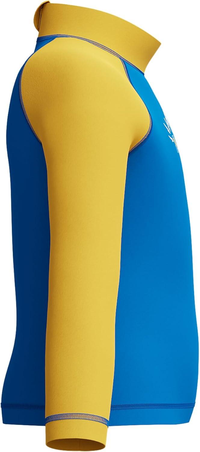 Get set for sunny adventures with our bright blue Sun Protection Top and Short set. The elbow-length rash top protects young skin from the sun and features our loveable Learn to Swim characters surfing. The matching knee-length shorts offer a comfy fit and extra coverage. Cut from pilling-resistant Enduraflex fabric with higher chlorine resistance than standard swimwear fabrics.