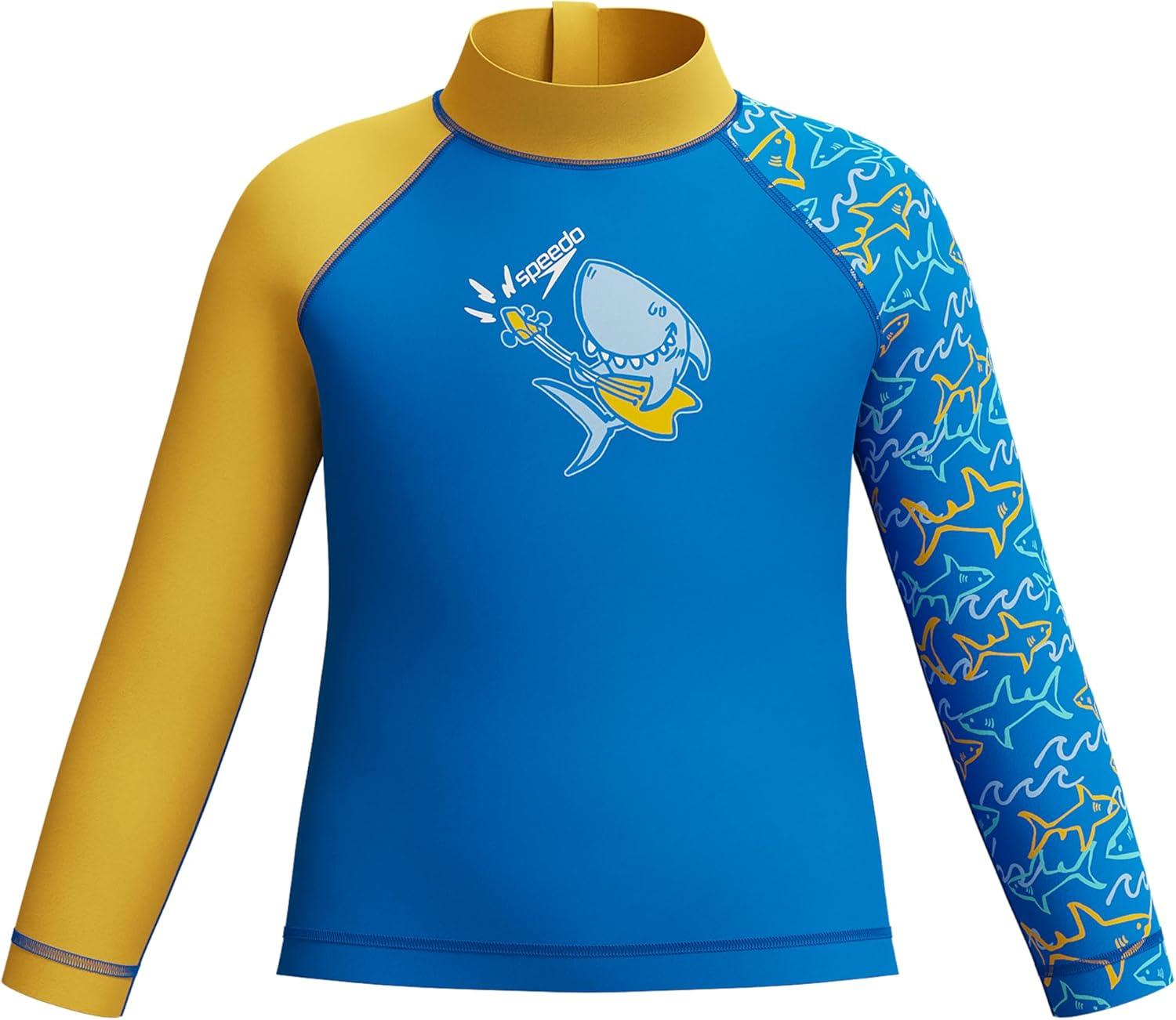 Speedo Boys' Swimsuit Infant to Big Kid UPF 50+ Learn to Swim(L/S Top Lagoon Blue)