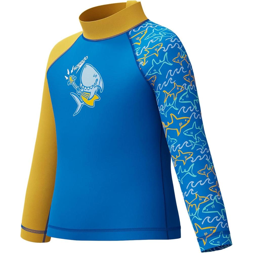 imageSpeedo Boys Swimsuit Infant to Big Kid UPF 50 Learn to SwimLS Top Lagoon Blue