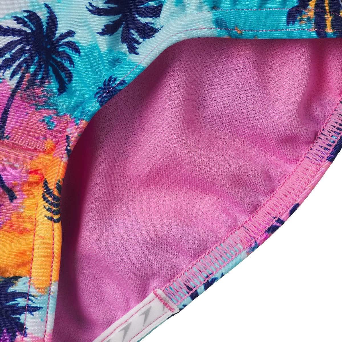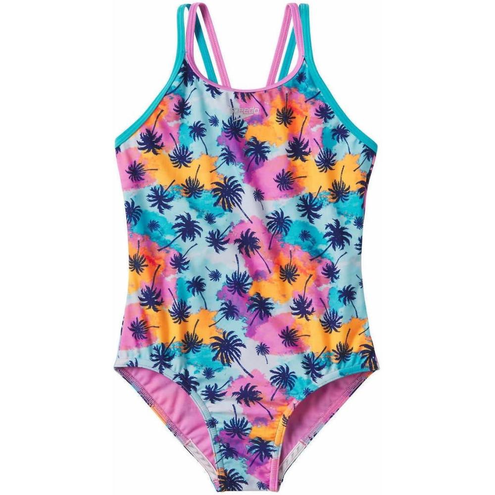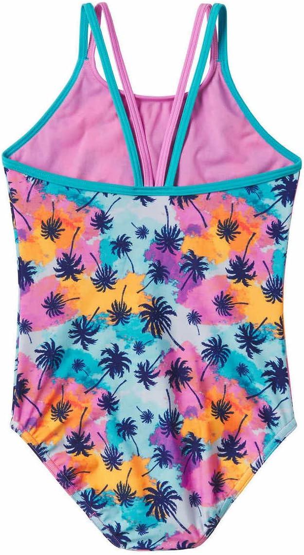 Keep her pool look classic with this solid swimsuit, featuring a colorful logo graphic. It's made from fabric that resists chlorine and pilling for durability that can withstand splashes and washing. Finished with Block the Burn UPF 50+ sun protection, this suit has it all.