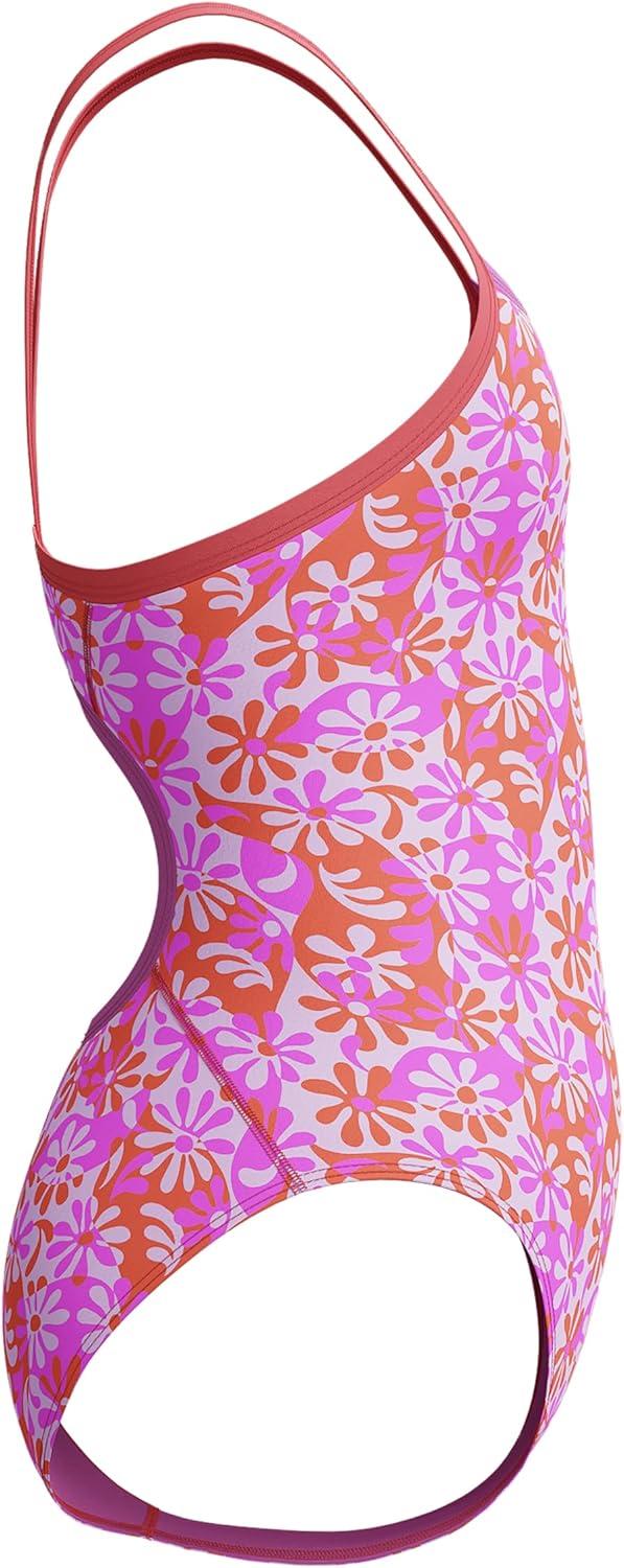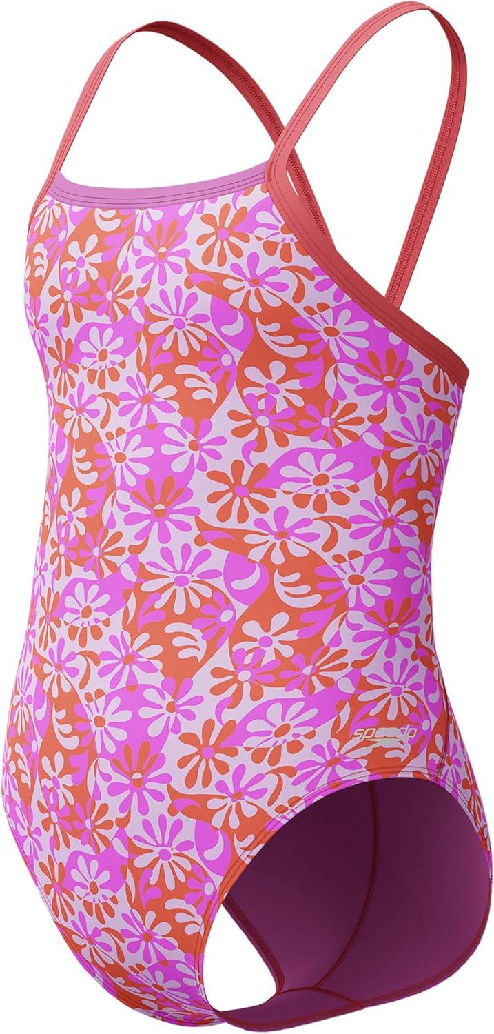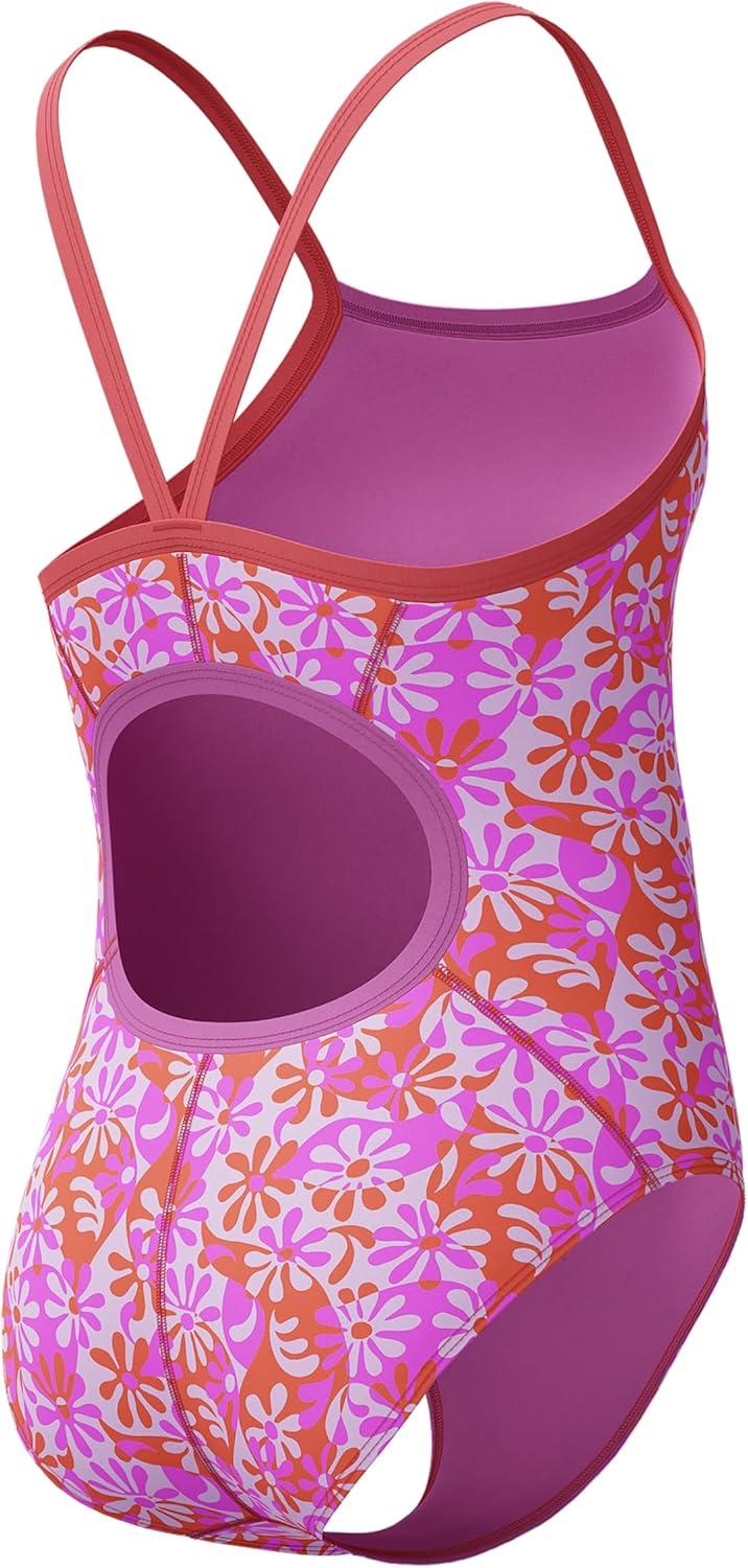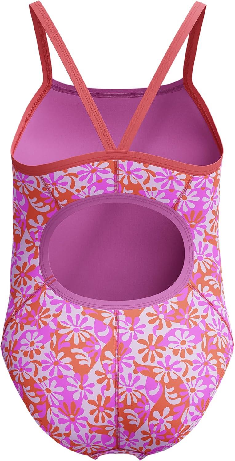 Keep her pool look classic with this solid swimsuit, featuring a colorful logo graphic. It's made from fabric that resists chlorine and pilling for durability that can withstand splashes and washing. Finished with Block the Burn UPF 50+ sun protection, this suit has it all.