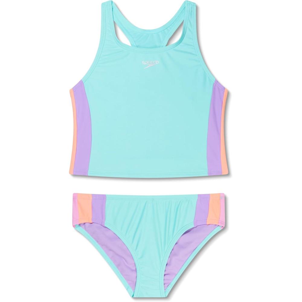 Speedo Girls Swimsuit Two Piece Tankini Thick StrapTankini Set(Aqua Splash)