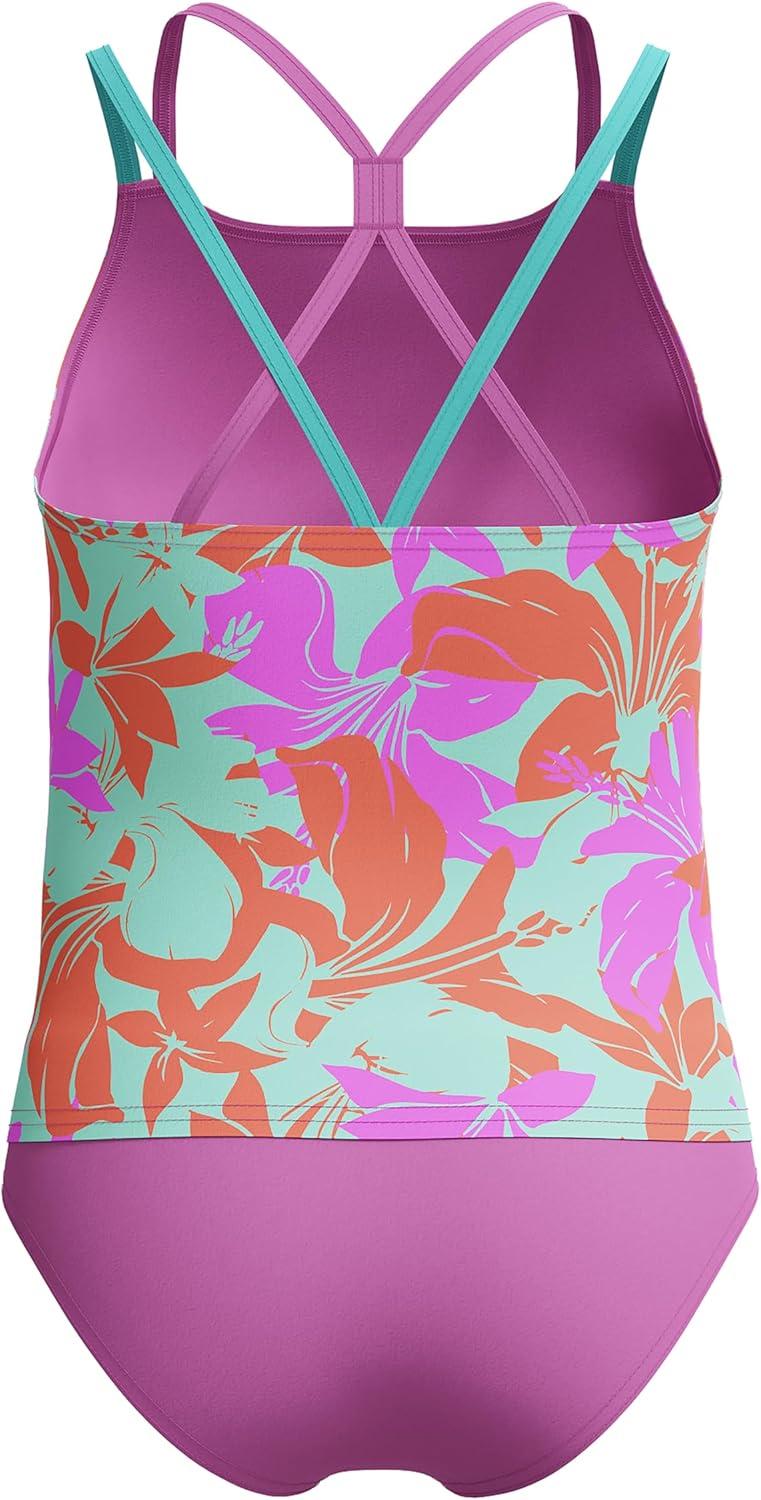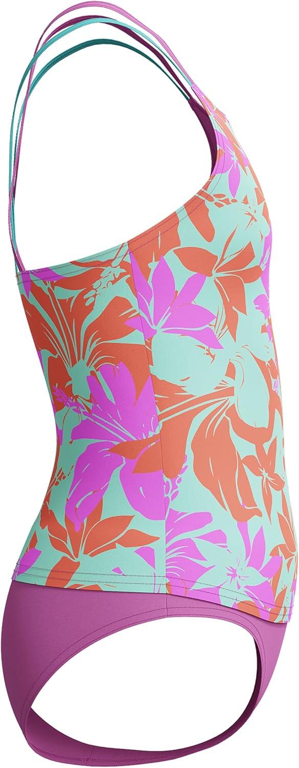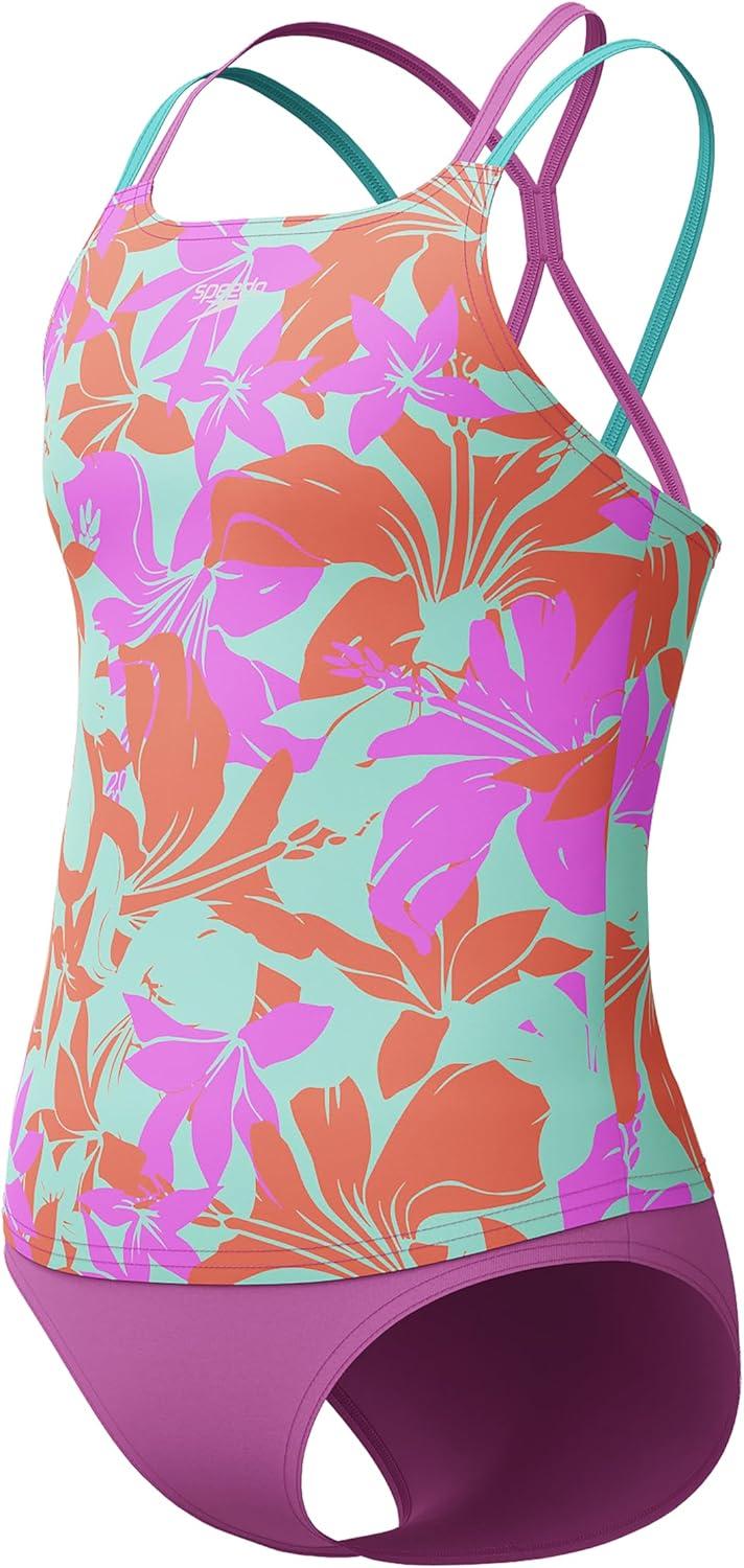 Speedo equals better fit, performance, quality, and innovation. The girl's 7-16 infinity splice one piece is a popular athletic styled basic that is great for young swim team enthusiasts or for any water activity. The suit features trademarked xtra life lycra which lasts 5 to 10 times longer than traditional lycra. So no bag and sag, and it looks like new for longer. With bold colorblock details, it also offers our new no wedgie worries technology, which adds a thin silicone gripper at the inner edge of the bottom to keep the suit in place during activities. Look and feel your best in or out of the water, while you play, train or win in speedo, the choice of champions. Features: 80% Nylon/20% Lycra Hand Wash Xtra life lycra fabric lasts 5 to 10 times longer to give you more value for your money Resists bagging, sagging, and the effects of suntan lotion, skin oils, and chlorine No wedgie worries silicone gripper at leg openings for stay put coverage Sporty thick strap racerback styling for an improved fit and secure comfort