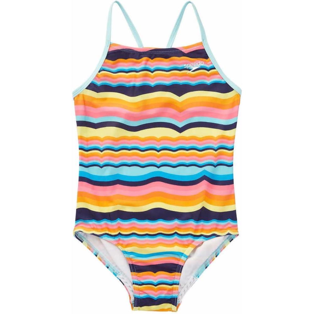 Speedo equals better fit, performance, quality, and innovation. The girl's 7-16 infinity splice one piece is a popular athletic styled basic that is great for young swim team enthusiasts or for any water activity. The suit features trademarked xtra life lycra which lasts 5 to 10 times longer than traditional lycra. So no bag and sag, and it looks like new for longer. With bold colorblock details, it also offers our new no wedgie worries technology, which adds a thin silicone gripper at the inner edge of the bottom to keep the suit in place during activities. Look and feel your best in or out of the water, while you play, train or win in speedo, the choice of champions. Features: 80% Nylon/20% Lycra Hand Wash Xtra life lycra fabric lasts 5 to 10 times longer to give you more value for your money Resists bagging, sagging, and the effects of suntan lotion, skin oils, and chlorine No wedgie worries silicone gripper at leg openings for stay put coverage Sporty thick strap racerback styling for an improved fit and secure comfort