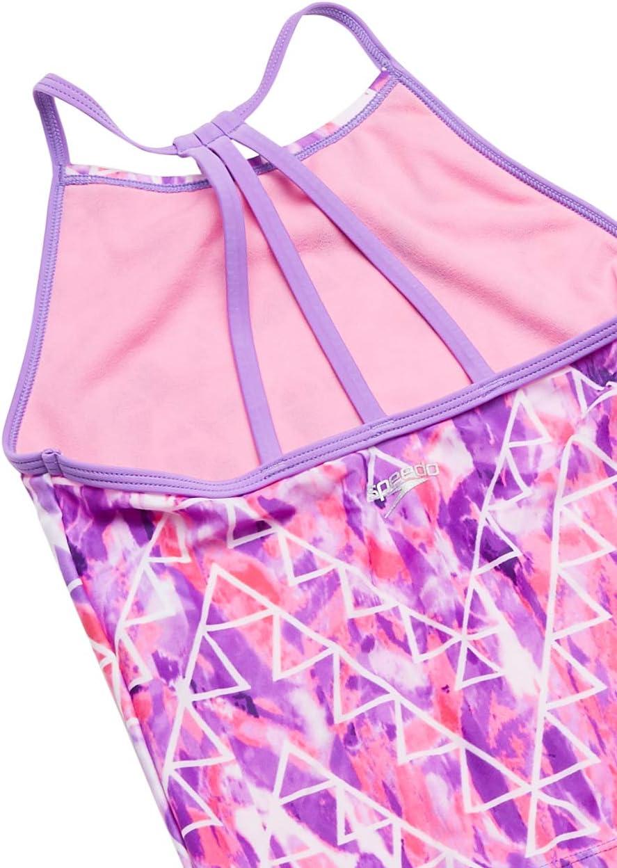 Speedo equals better fit, performance, quality, and innovation. The girl's 7-16 infinity splice one piece is a popular athletic styled basic that is great for young swim team enthusiasts or for any water activity. The suit features trademarked xtra life lycra which lasts 5 to 10 times longer than traditional lycra. So no bag and sag, and it looks like new for longer. With bold colorblock details, it also offers our new no wedgie worries technology, which adds a thin silicone gripper at the inner edge of the bottom to keep the suit in place during activities. Look and feel your best in or out of the water, while you play, train or win in speedo, the choice of champions. Features: 80% Nylon/20% Lycra Hand Wash Xtra life lycra fabric lasts 5 to 10 times longer to give you more value for your money Resists bagging, sagging, and the effects of suntan lotion, skin oils, and chlorine No wedgie worries silicone gripper at leg openings for stay put coverage Sporty thick strap racerback styling for an improved fit and secure comfort