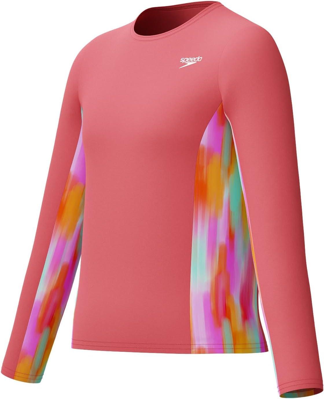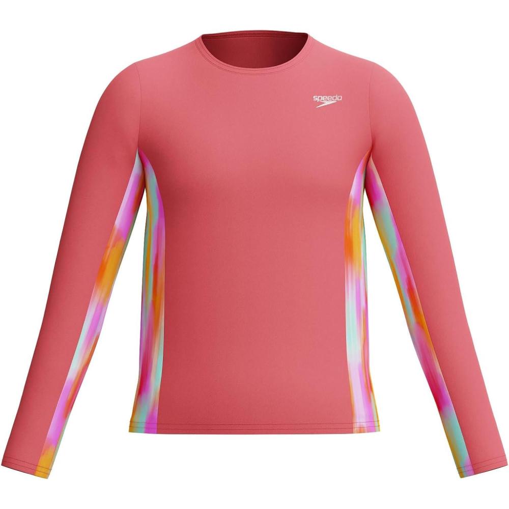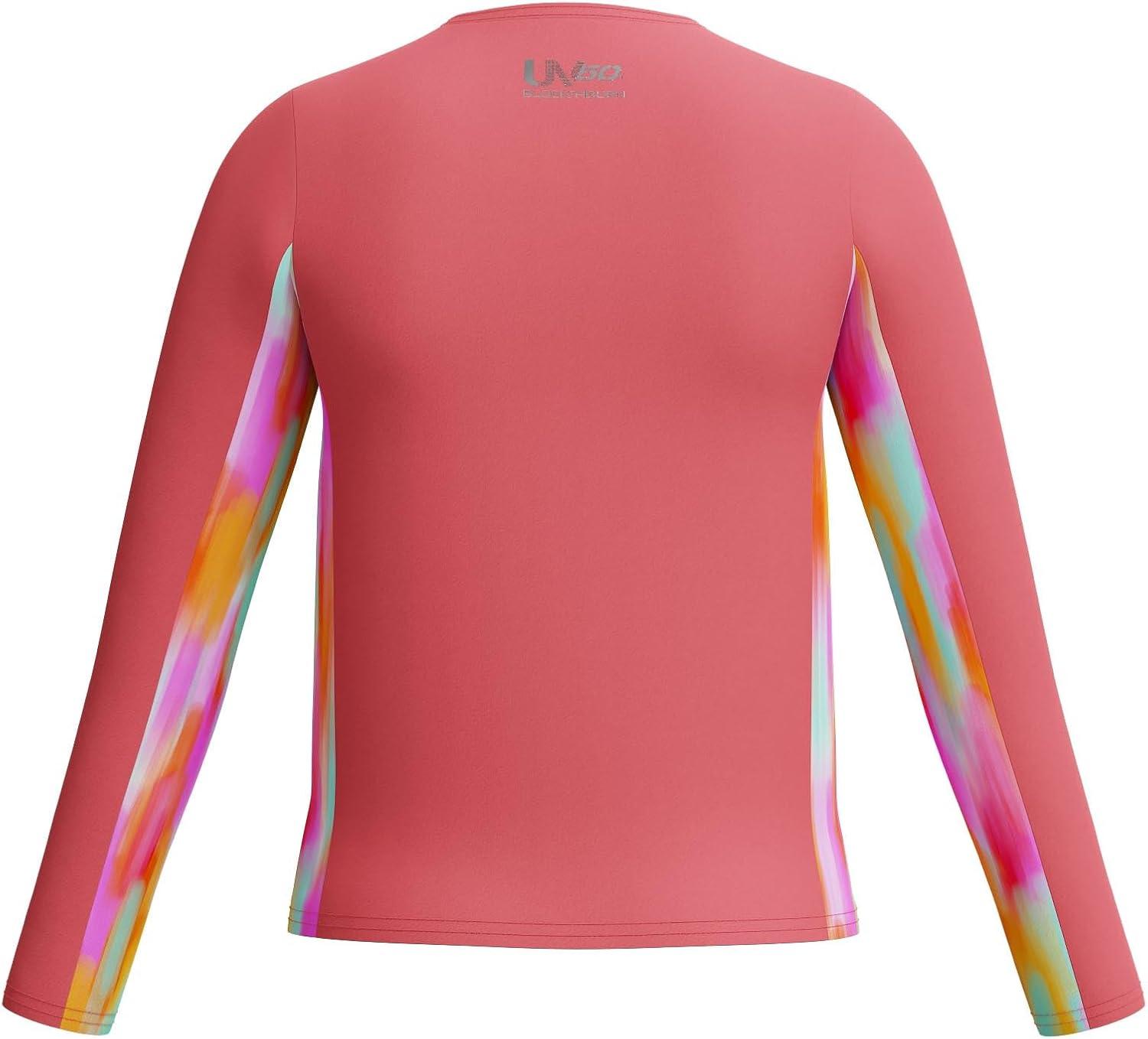 This colorful long-sleeve rash guard offers built-in sun protection for surfer Girls in training. It's constructed of durable, stretchy fabric that's designed to hold its shape long after she outgrows it. Raglan sleeves offer enhanced mobility; contrast stitching adds a fun color pop.