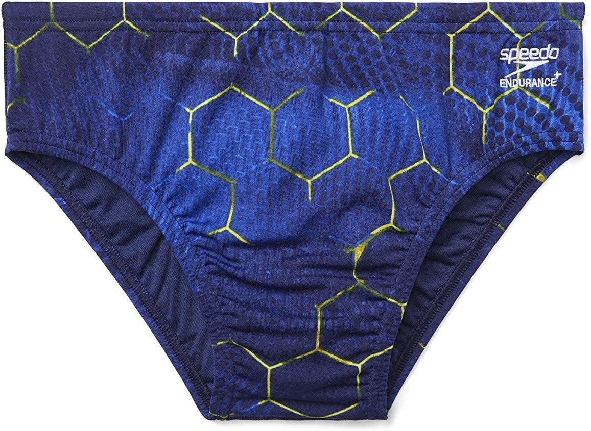 Speedo Men’s Caged Out Brief Endurance+ Swimsuit(Emerging Navy/Gold)