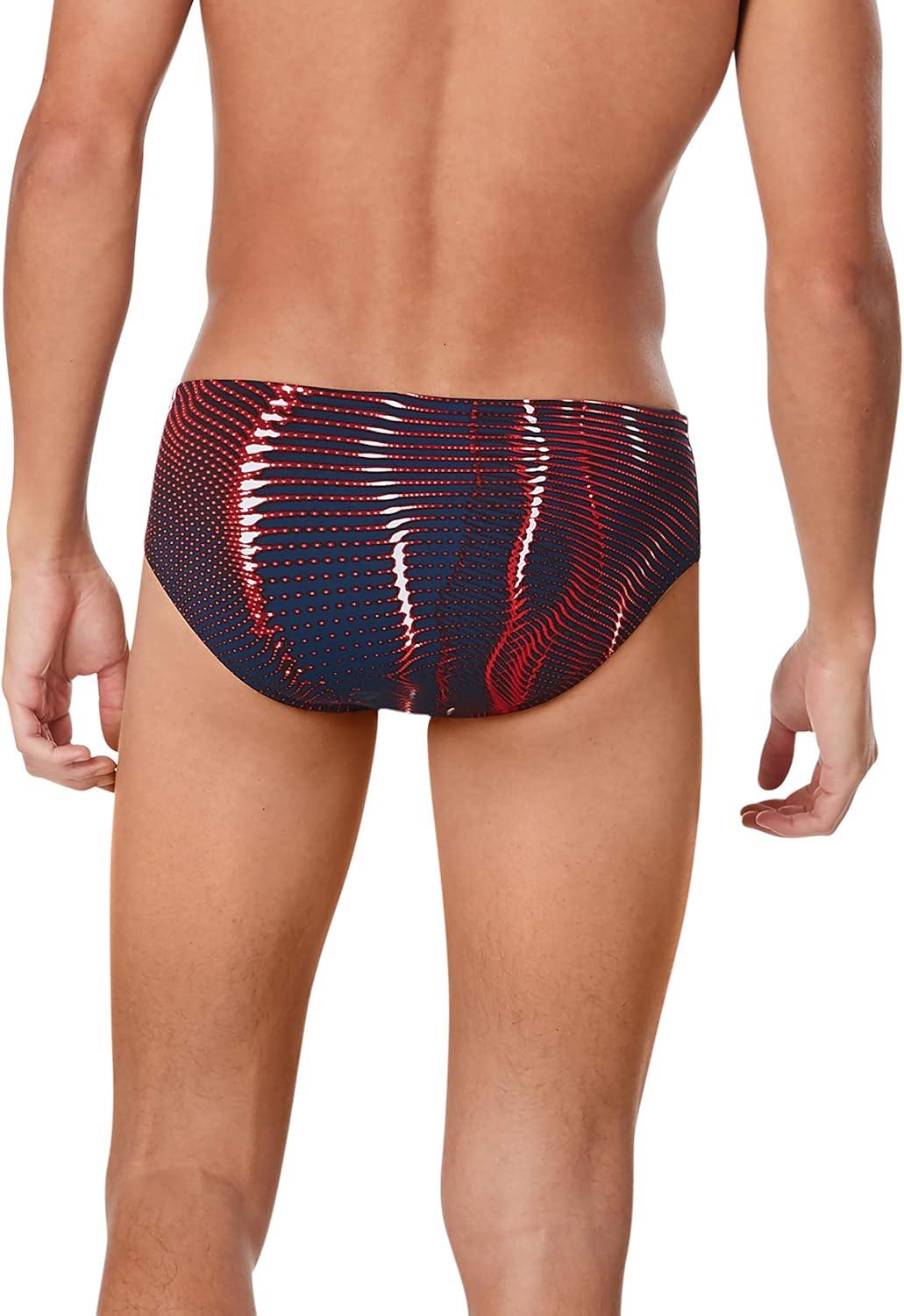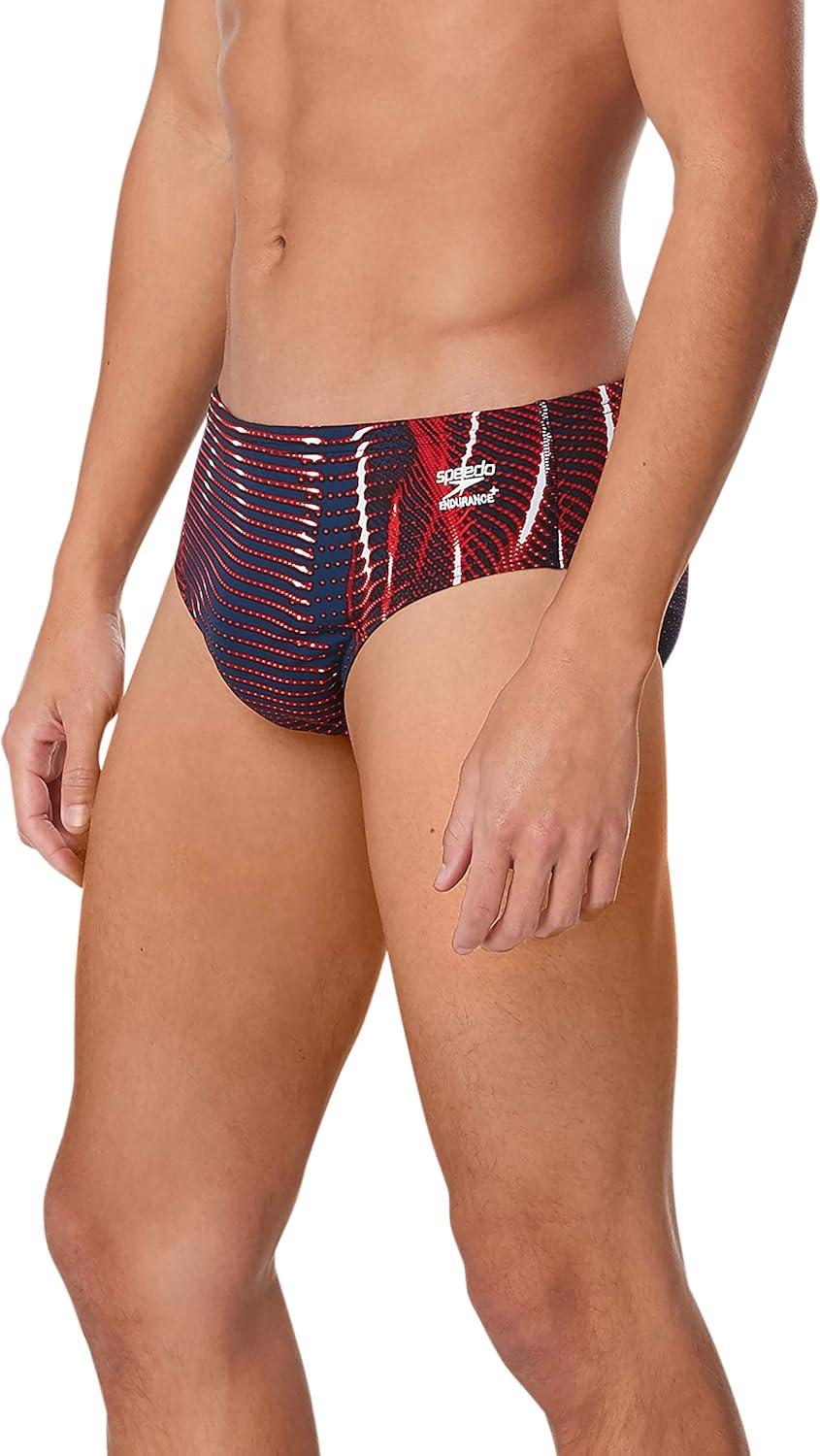 Speedo Men’s Caged Out Brief Endurance+ Swimsuit(Solar Red/White/Blue)