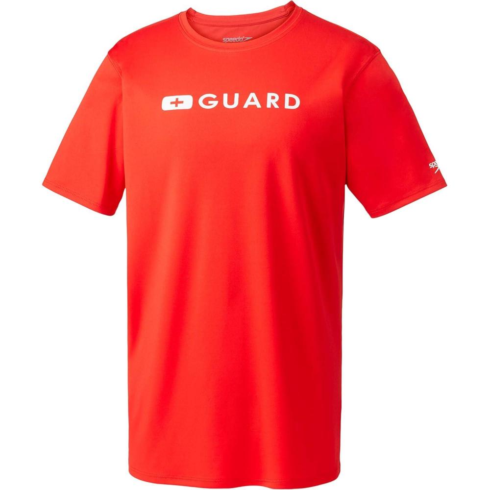 Speedo Mens Guard Uv Swim Shirt Short Sleeve Rashguard(Speedo Red)