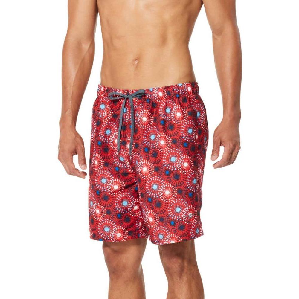 Speedo Mens Swim Trunk Mid Length Redondo Printed(Speedo Red Fireworks)