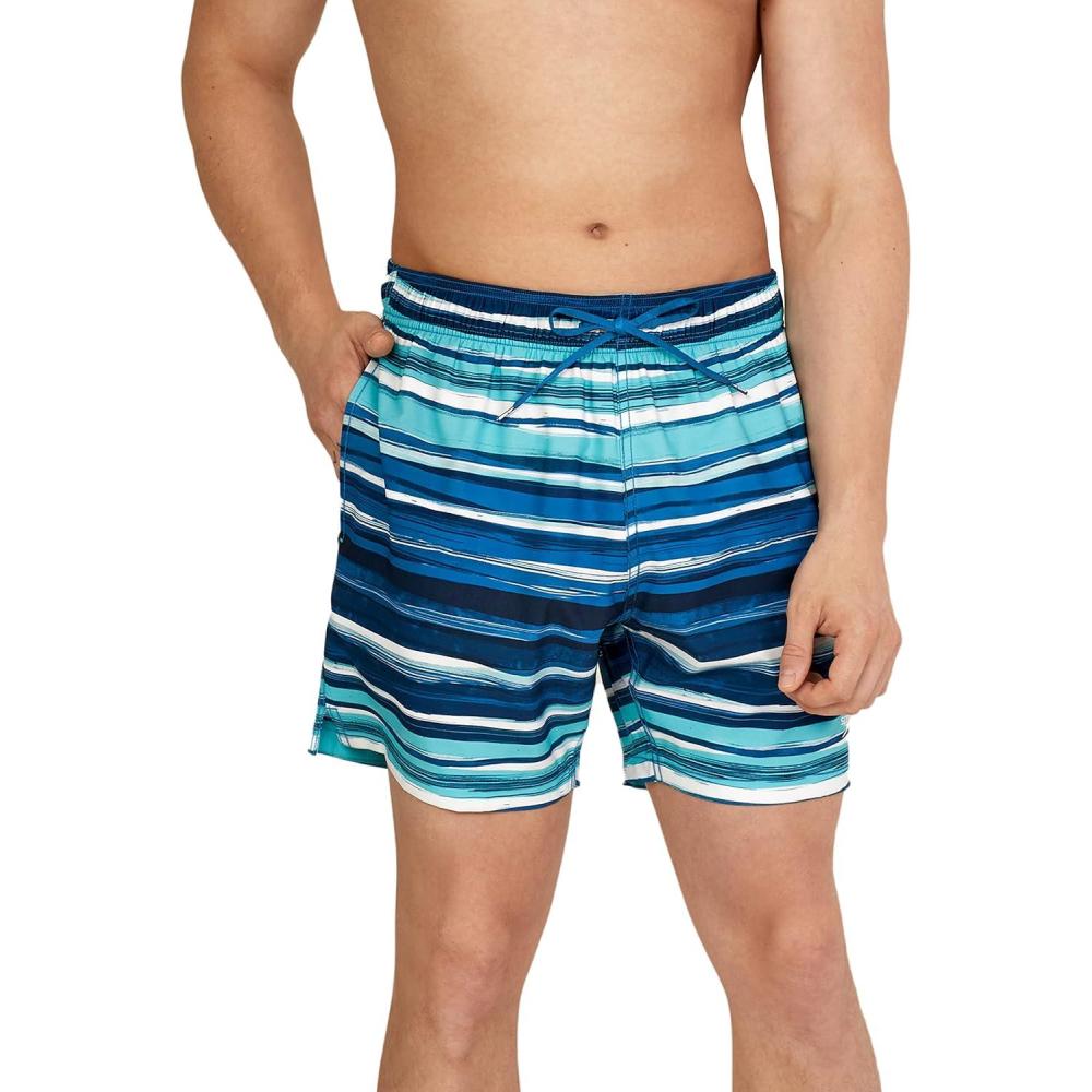 Speedo Mens Swim Trunk Short Length Redondo Comfort Liner PrintSwim Trunks(Onshore Blend Peacoat)