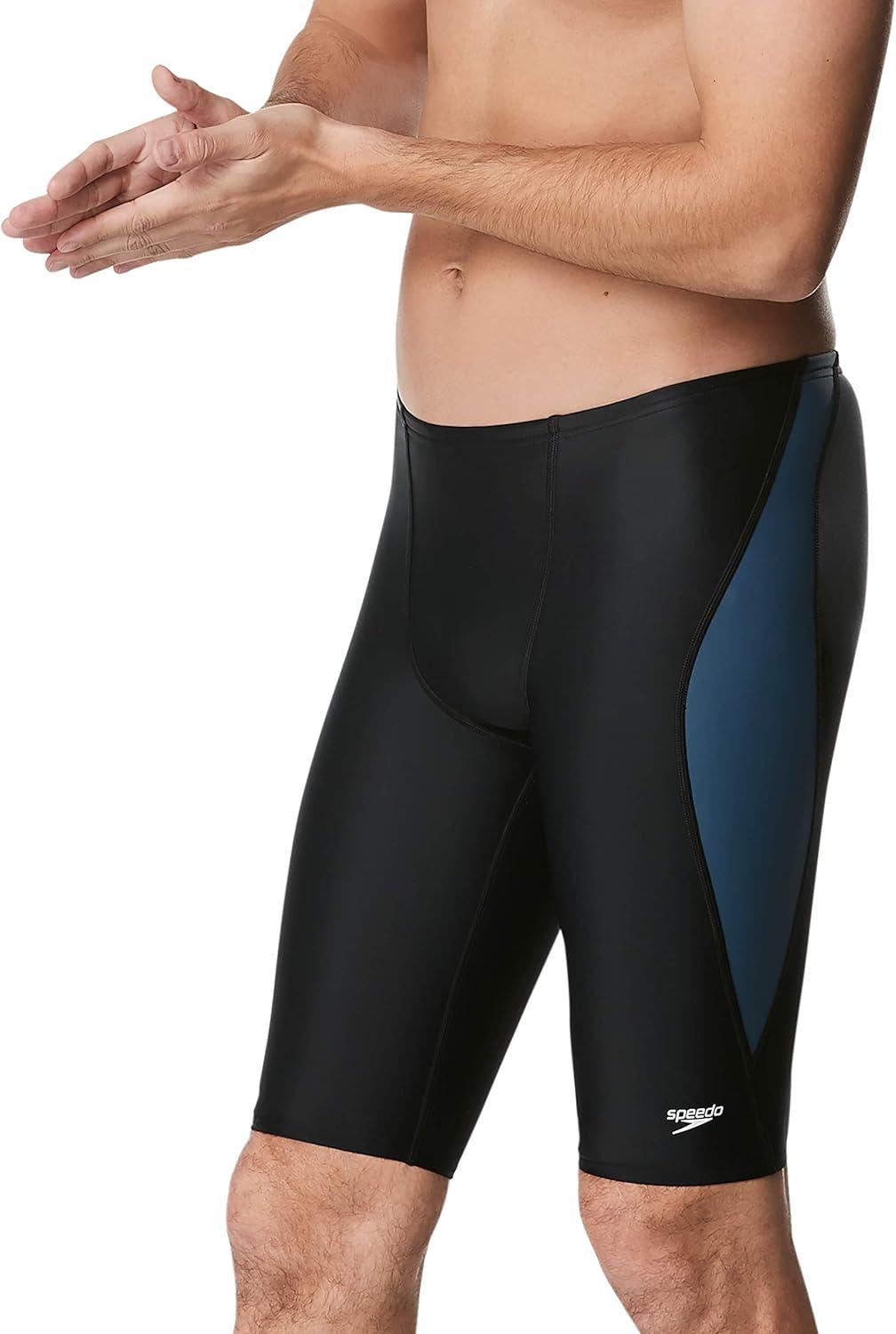 Speedo Mens Swimsuit Jammer Powerflex Eco Revolve Splice Team Colors(Black/Grey)