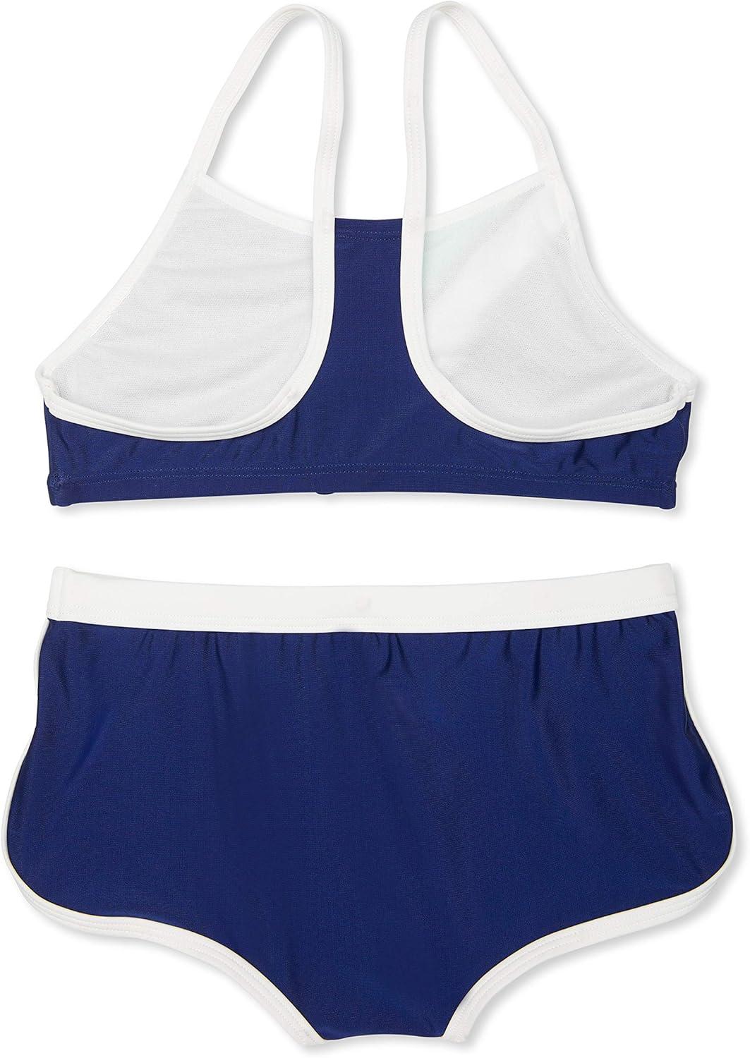 She can practice cannonballs all day in the comfort of this Color block swim set. Crafted from a stretchy, durable fabric that can withstand the harmful effects of chlorine, this sporty two-piece features a racerback strap design and silicone grippers at the leg openings that ensure her suit stays comfortably in place as she plays.