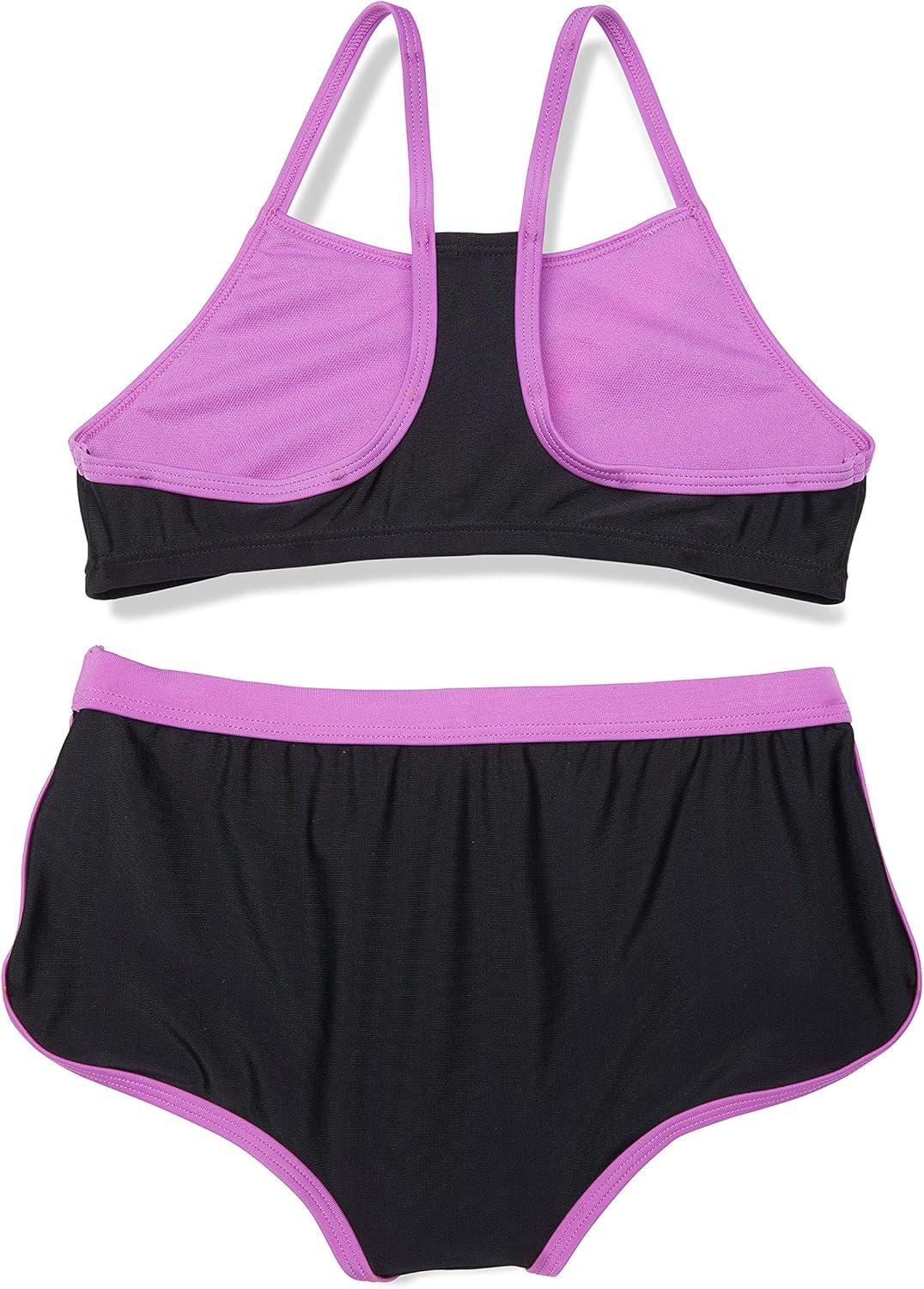 She can practice cannonballs all day in the comfort of this Color block swim set. Crafted from a stretchy, durable fabric that can withstand the harmful effects of chlorine, this sporty two-piece features a racerback strap design and silicone grippers at the leg openings that ensure her suit stays comfortably in place as she plays.