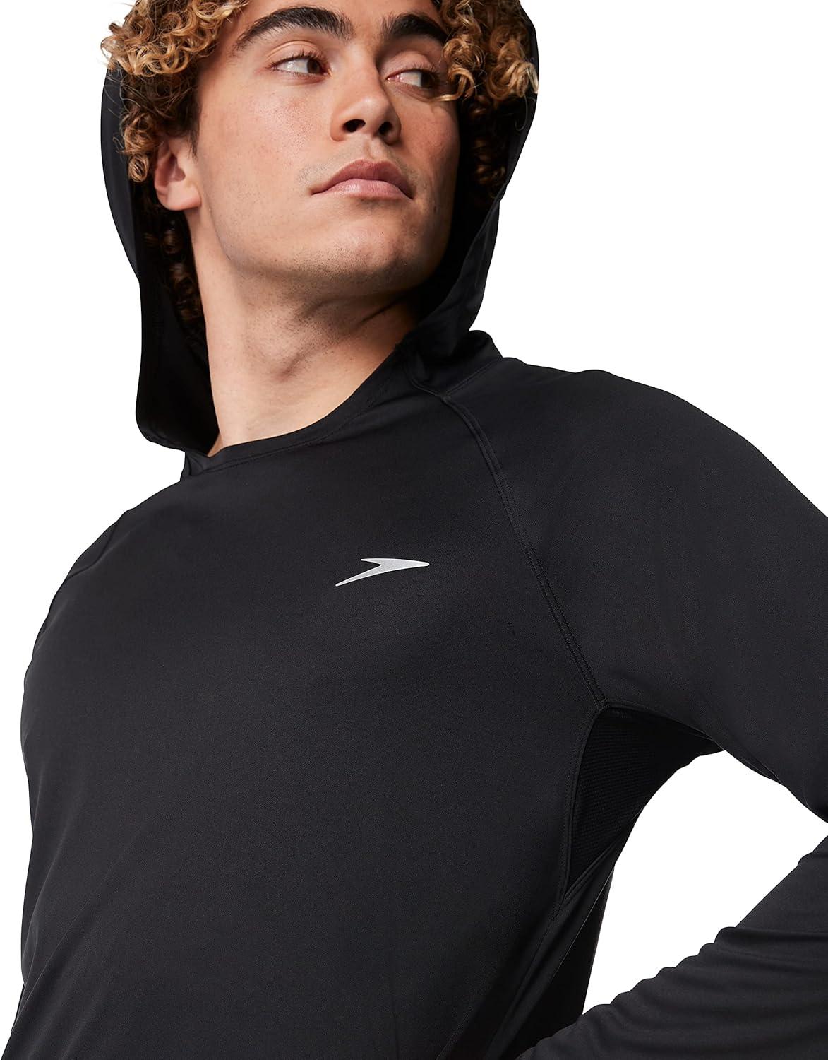 Speedo Mens Uv Swim Shirt Long Sleeve Fitness Rashguard(Hooded Anthracite)