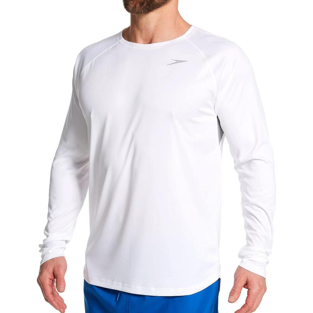 Cover up in the pool wearing this long-sleeve swim top. The crewneck style is made from quick-drying Speedo Eco fabric enhanced with Block the Burn UPF 50+ for built-in sun protection.