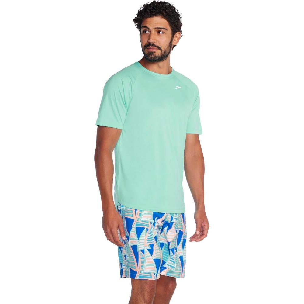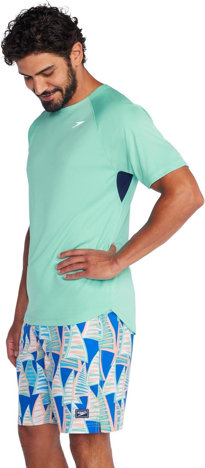 Speedo Mens Uv Swim Shirt Short Sleeve Fitness Rashguard(Arctic Glass)