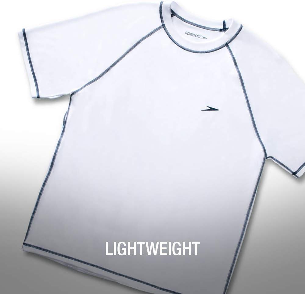 Speedo Mens Uv Swim Shirt Short Sleeve Fitness Rashguard(Loose White)
