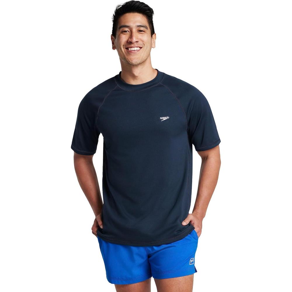 Speedo Mens Uv Swim Shirt Short Sleeve Fitness Rashguard(Loose New Navy)