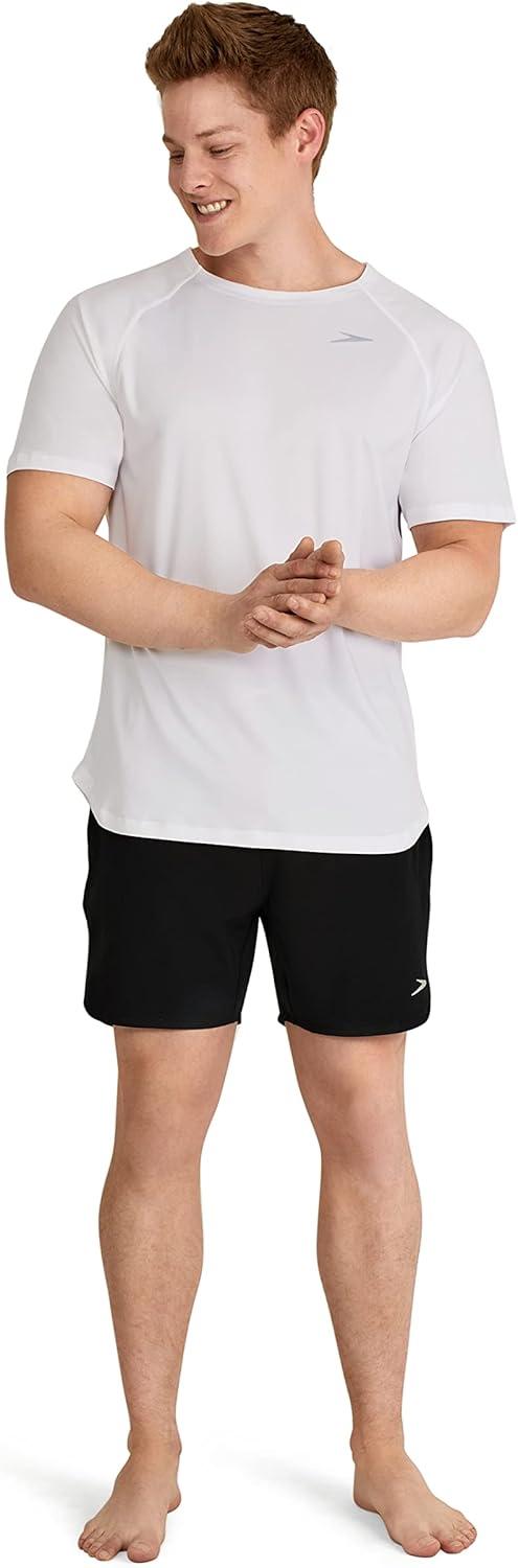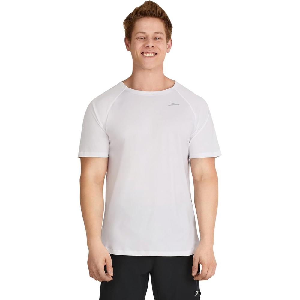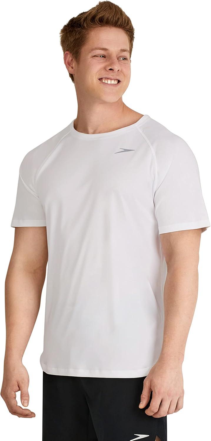 Speedo Mens Uv Swim Shirt Short Sleeve Fitness Rashguard(Speedo White)