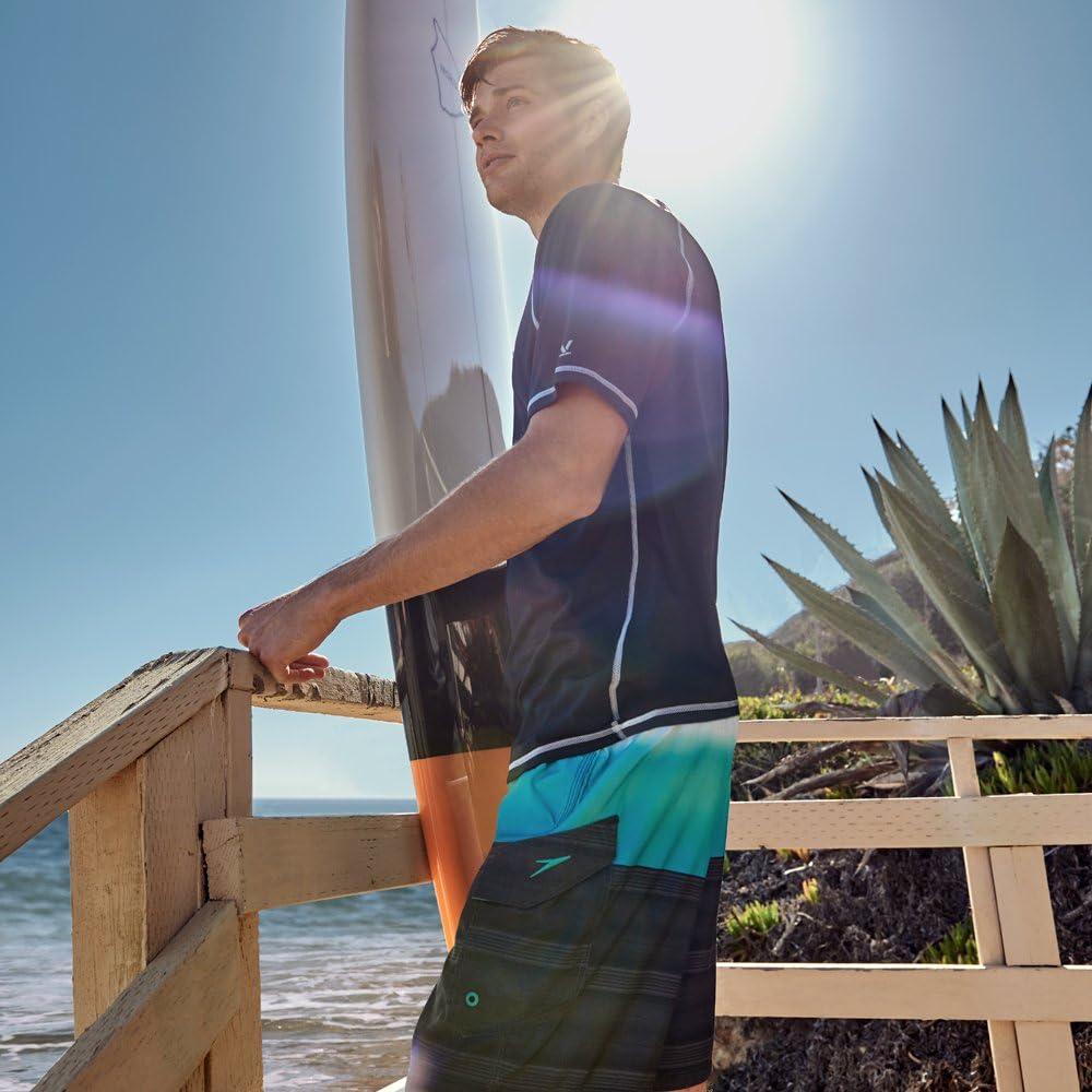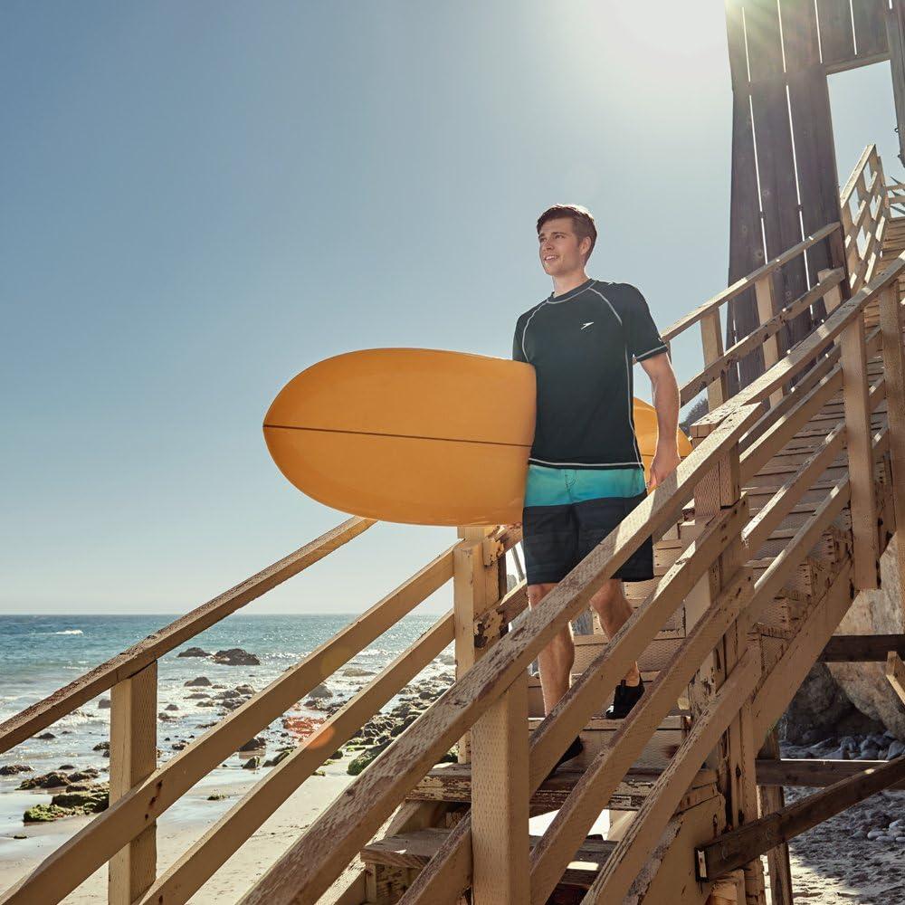 Speedo Men’s Uv Swim Shirt Short Sleeve Loose Fit Easy Tee-Discontinued(Black/Grey)