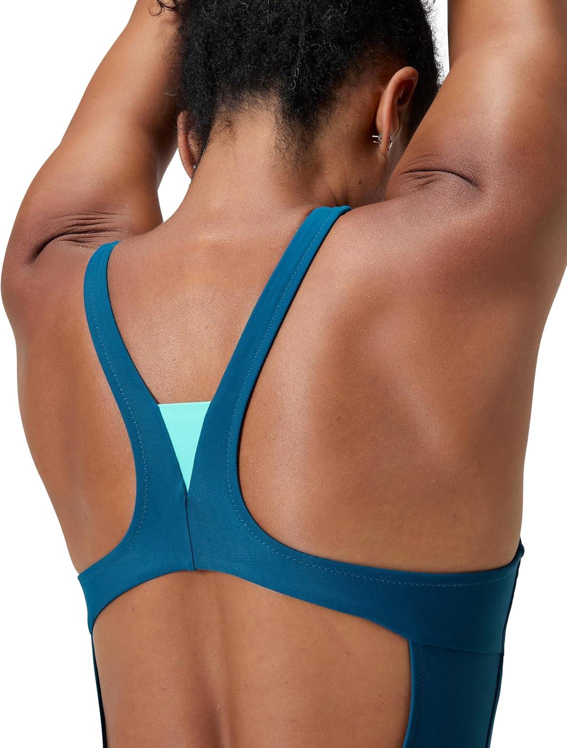 Flex your fitness in our zip-front colour-block swimsuit. The high neck and back deliver a speedy silhouette while flattering colour-block panels dial up the style. Removable bra cups lend shape and support. UPF50+ blocks the burn. Cut from pilling-resistant Enduraflex fabric for higher chlorine resistance and shape retention.
