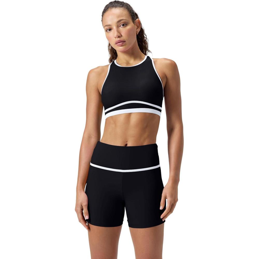 Keep it moving. Get comfortable in these biking shorts, finished with contrast mesh panels and a longer length for a sporty-chic finish.