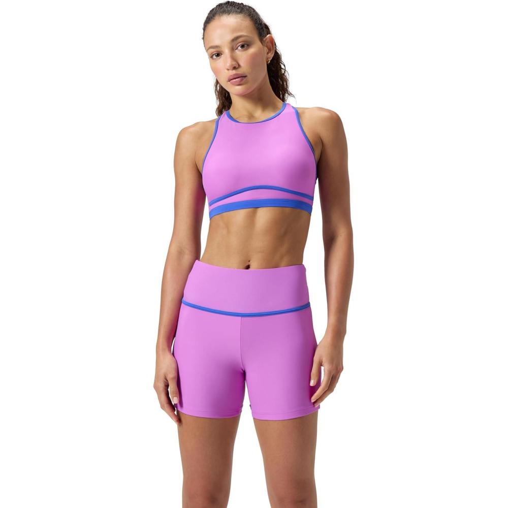 Keep it moving. Get comfortable in these biking shorts, finished with contrast mesh panels and a longer length for a sporty-chic finish.