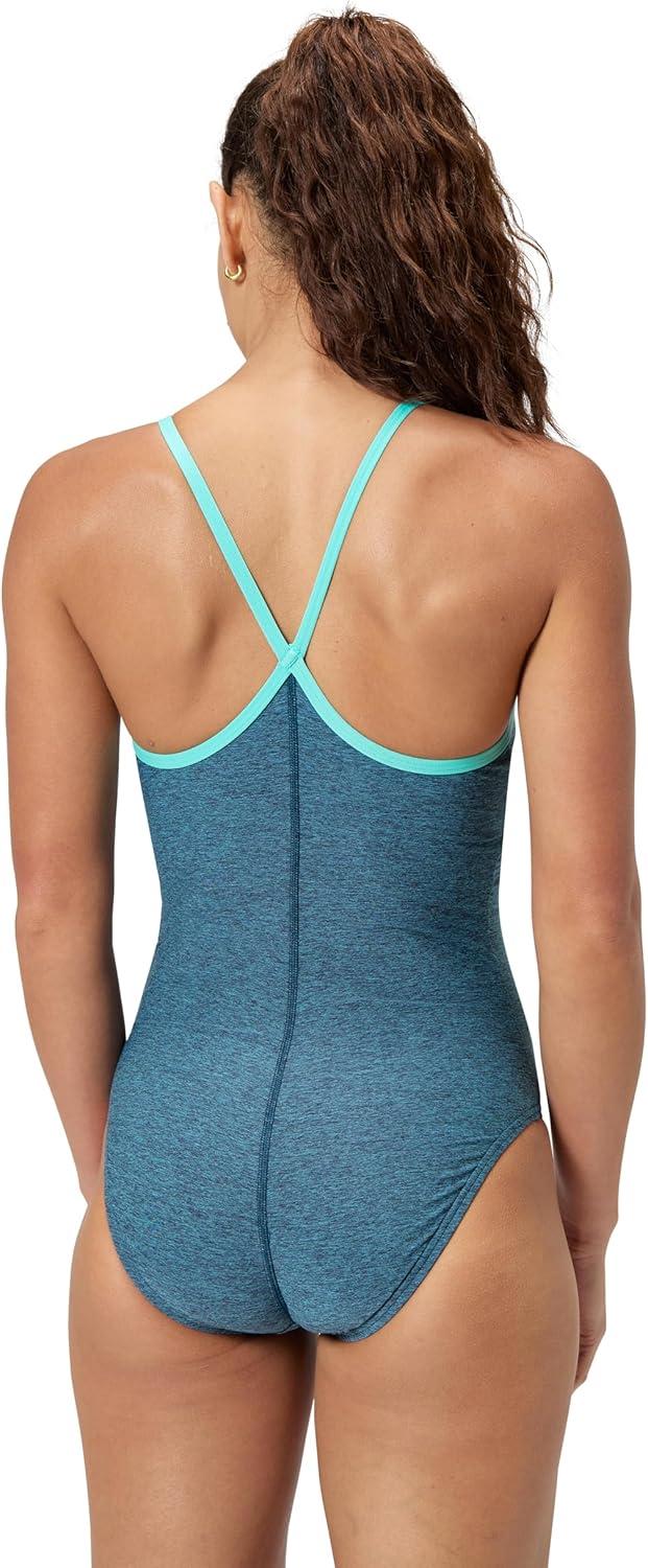 Speedo Women's Swimsuit One Piece Closed Back Thin Strap Hydrobra(Heather Dark Teal)