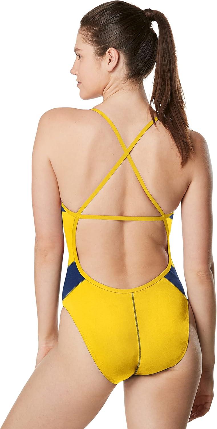 Speedo Womens Swimsuit One Piece Endurance+ Cross Back Solid Adult Team Colors(Edge Navy/Gold)