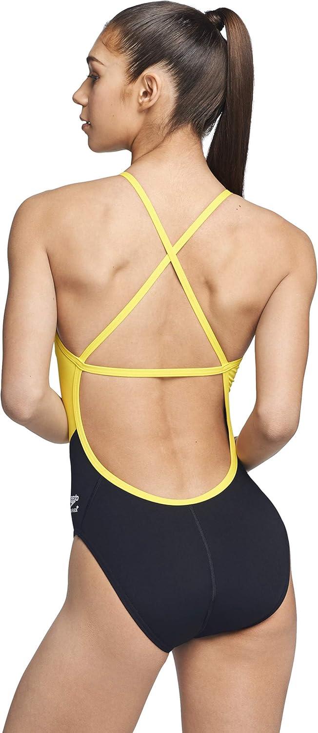 Speedo Womens Swimsuit One Piece Endurance+ Cross Back Solid Adult Team Colors(Spark Black/Yellow)