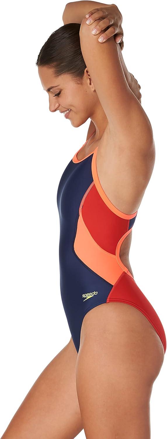 Speedo Womens Swimsuit One Piece Prolt Flyback Solid Adult Team Colors(Eco Splice Team Navy/Red)