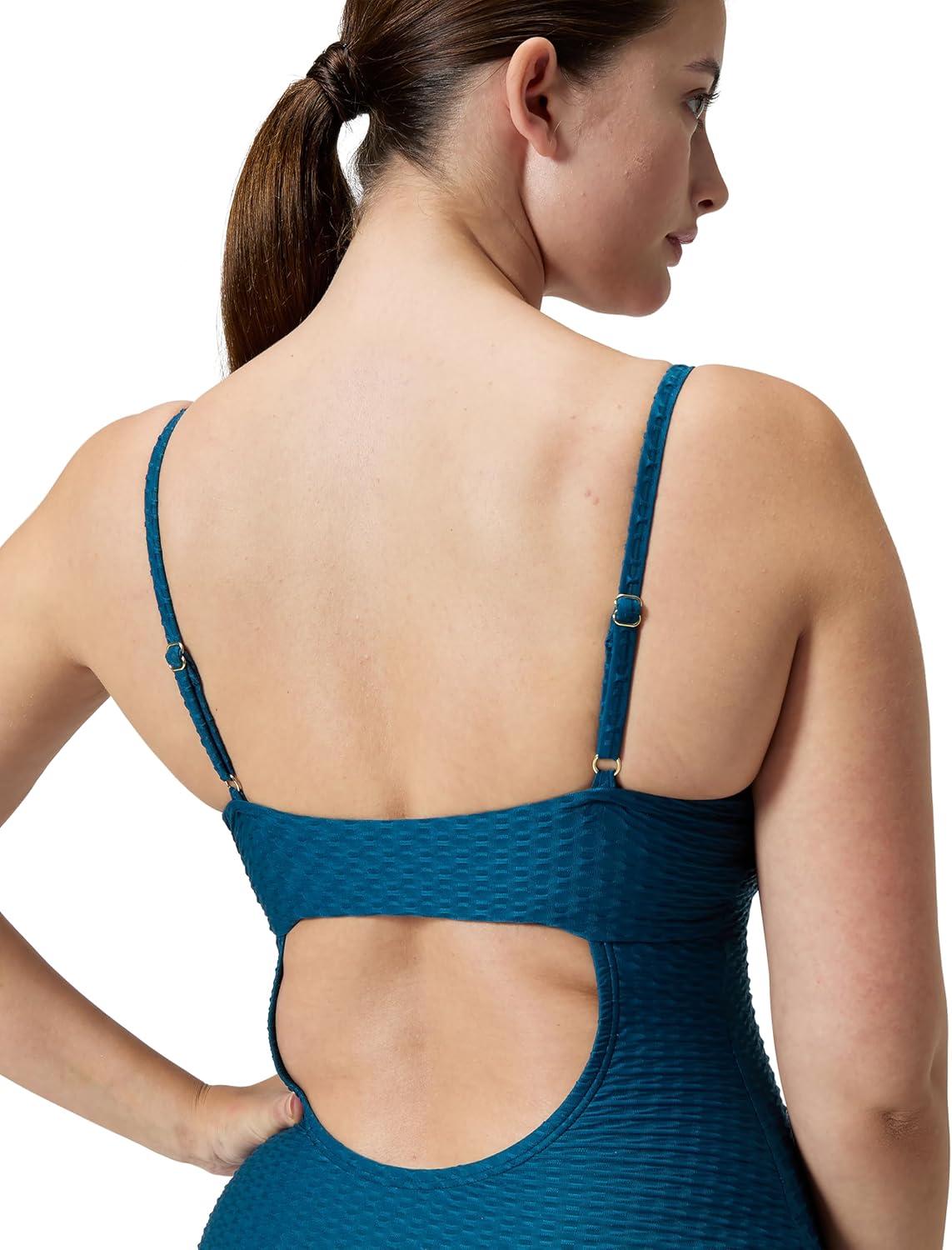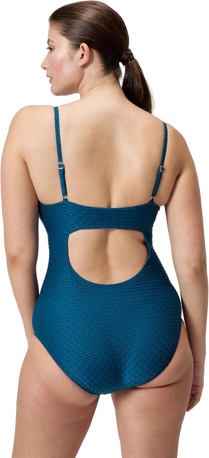 Speedo Womens Swimsuit One Piece V-Neck Strappy Back Contemporary Cut(Adjustable Dark Teal)