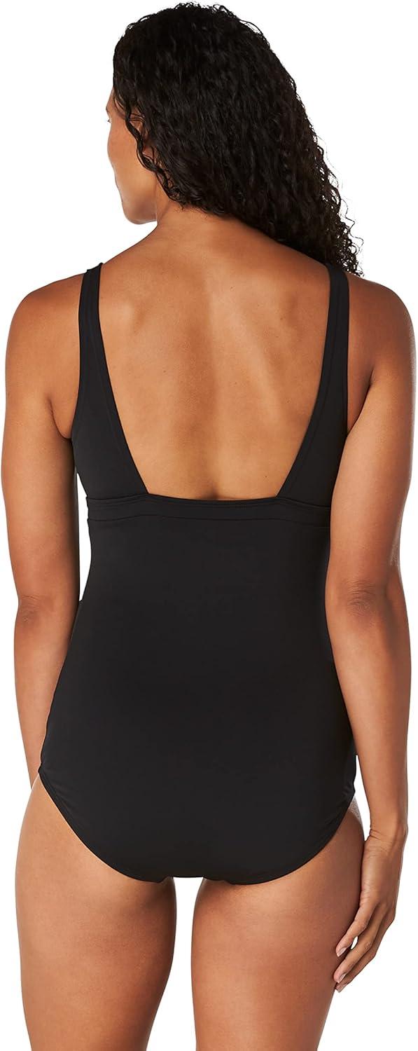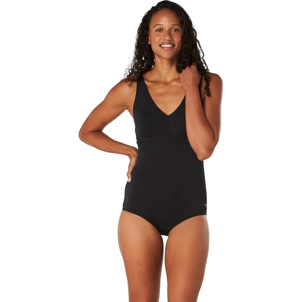 Speedo Womens Swimsuit One Piece V-Neck Strappy Back Contemporary Cut(Adjustable Speedo Black)